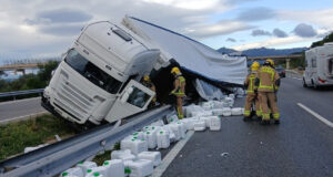 Un camió amb garrafes de fertilitzant bolca a l’AP-7 a Mont-roig...